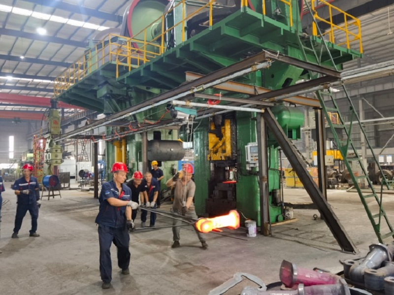 8月底,公司新建的8000吨锻造生产线正式投产。该生产线由两台双盘摩擦压力机(J53-8000B、J53-1600C)与2T全液压单臂式自由锻电液锤、全自动850辊锻机、操作机、以及1600KW-IGBT中频炉、闭式冷却塔、供配电系统等设施设备构成,总投资995.86万元。